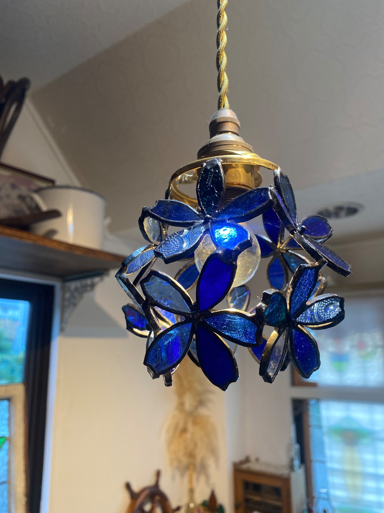 灯りを灯すと、穏やかで澄んだ青が広がり、