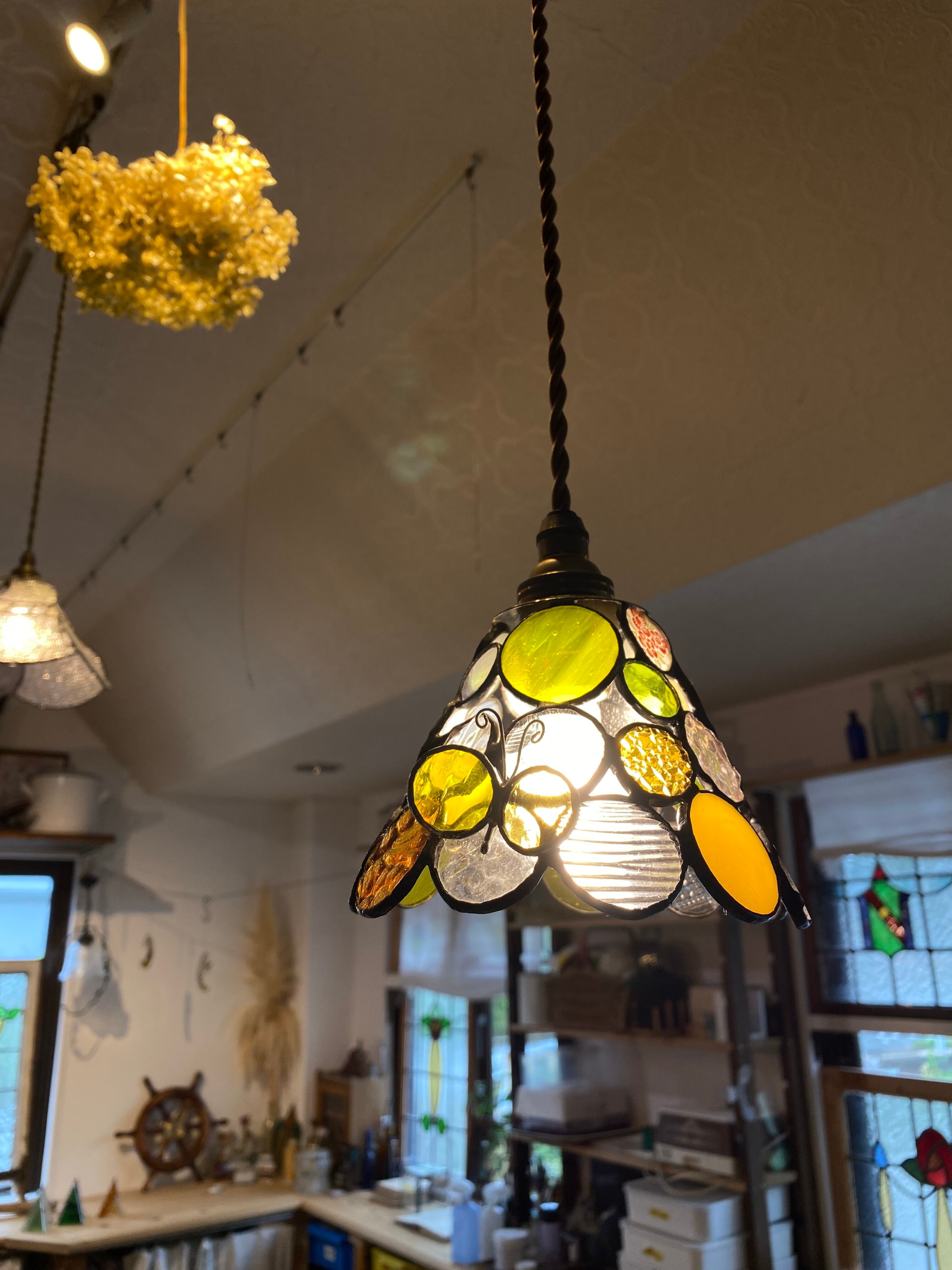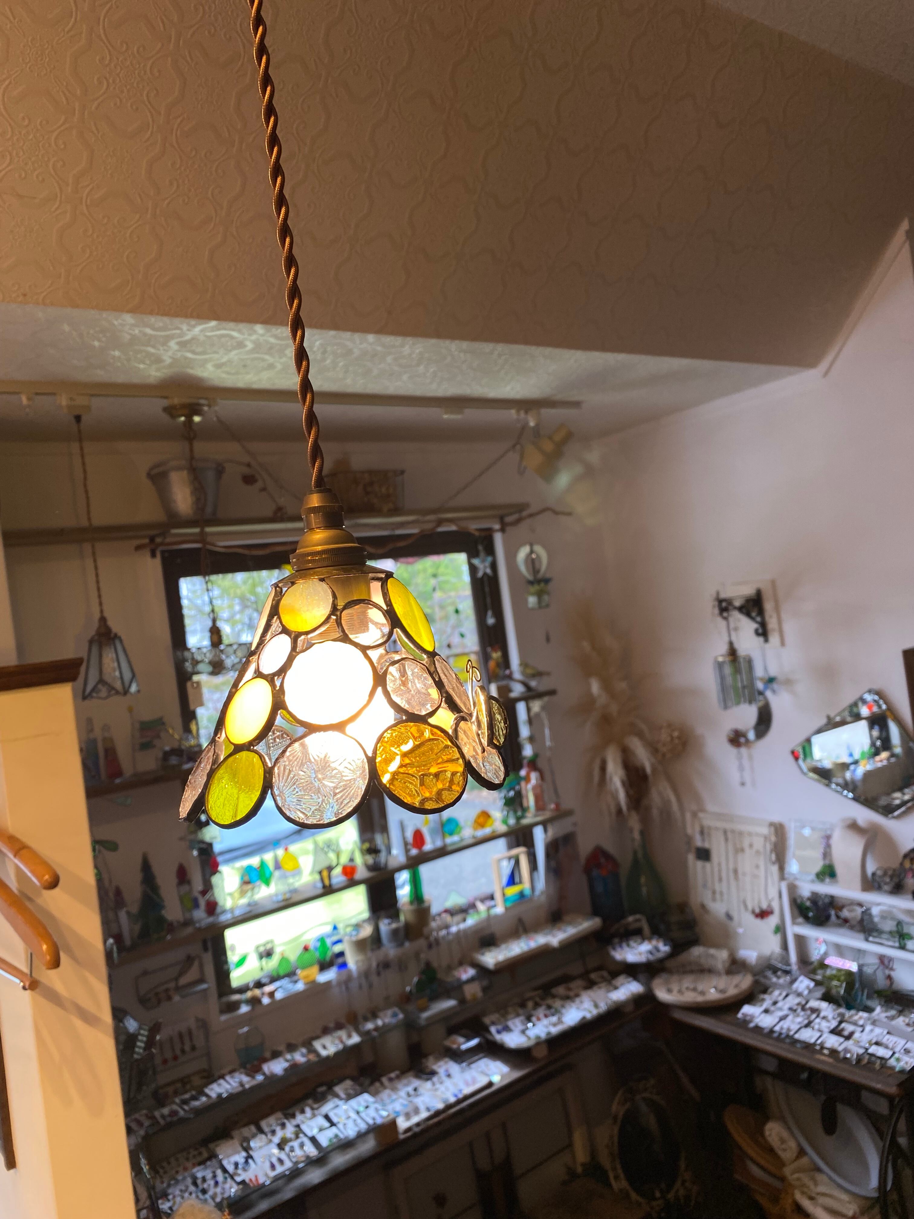 黄色・クリア・白のガラスが重なり、幻想的な表情を見せます。