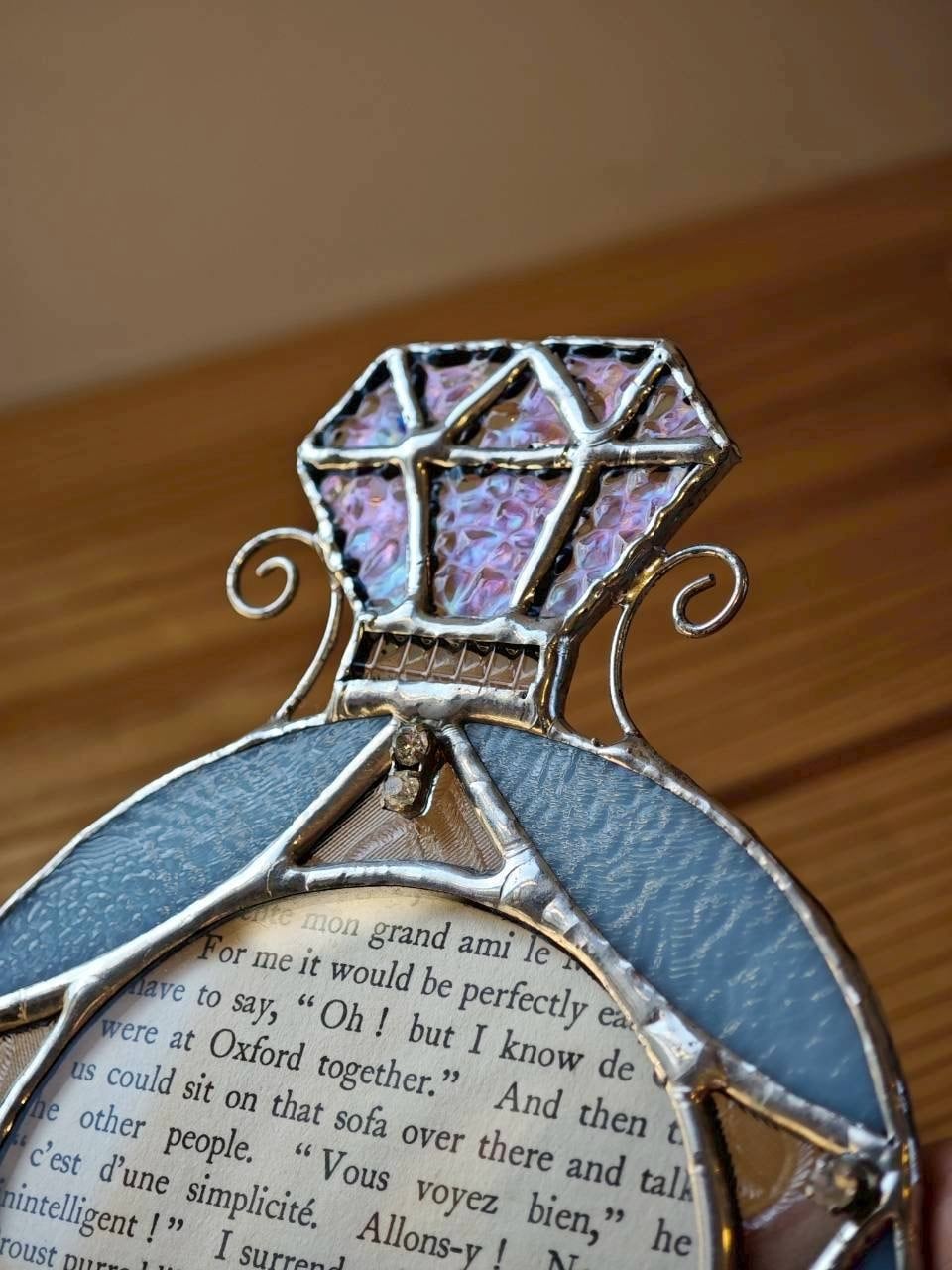 リングのダイヤモンドはオーロラガラスを使い、